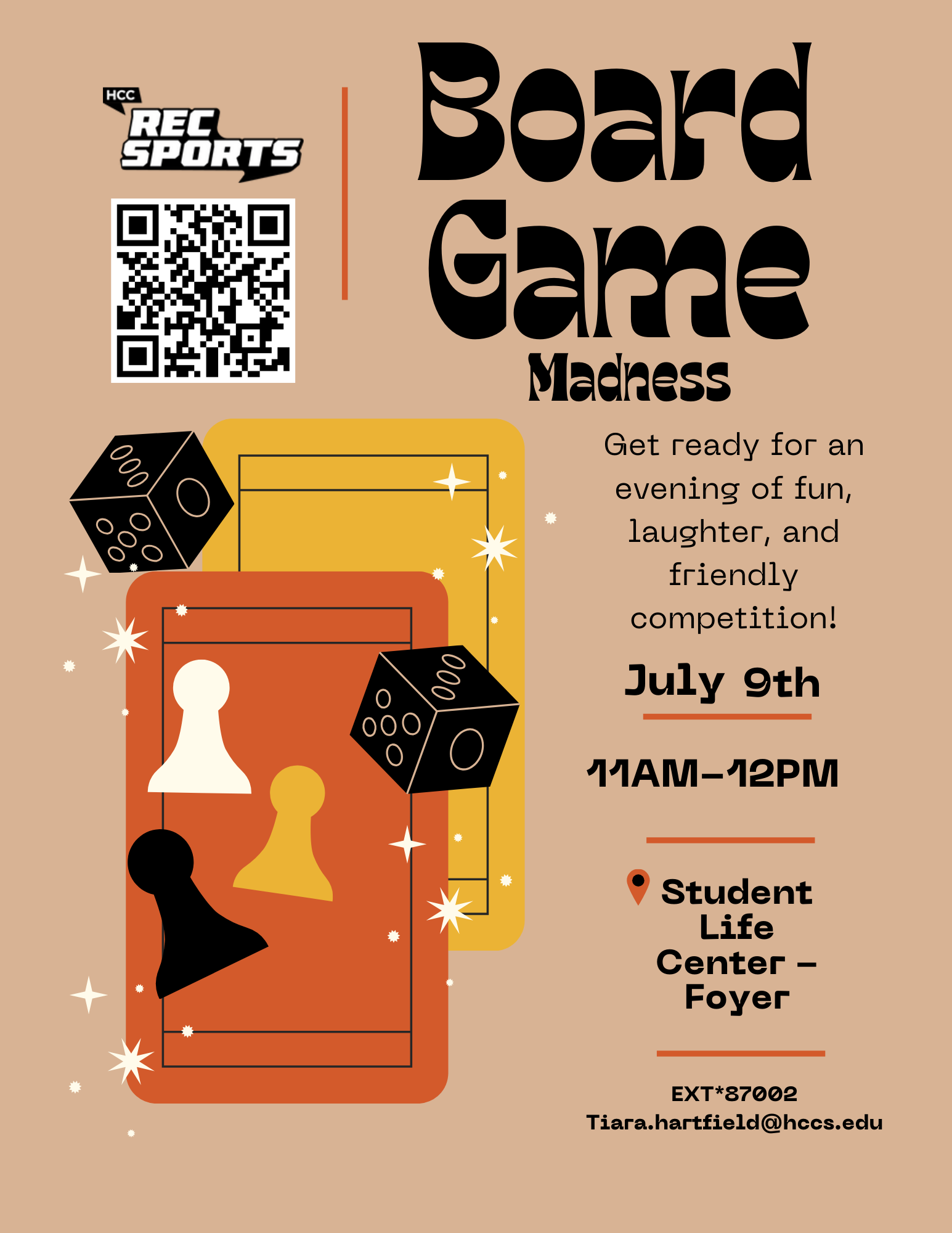Join us for a fun-filled Board Games night on campus! Whether you're a seasoned strategist or just looking for a good time, we've got games for everyone. Meet new friends, enjoy some friendly competition, and unwind with your favorite classics and new favorites. Don't miss out on the fun!