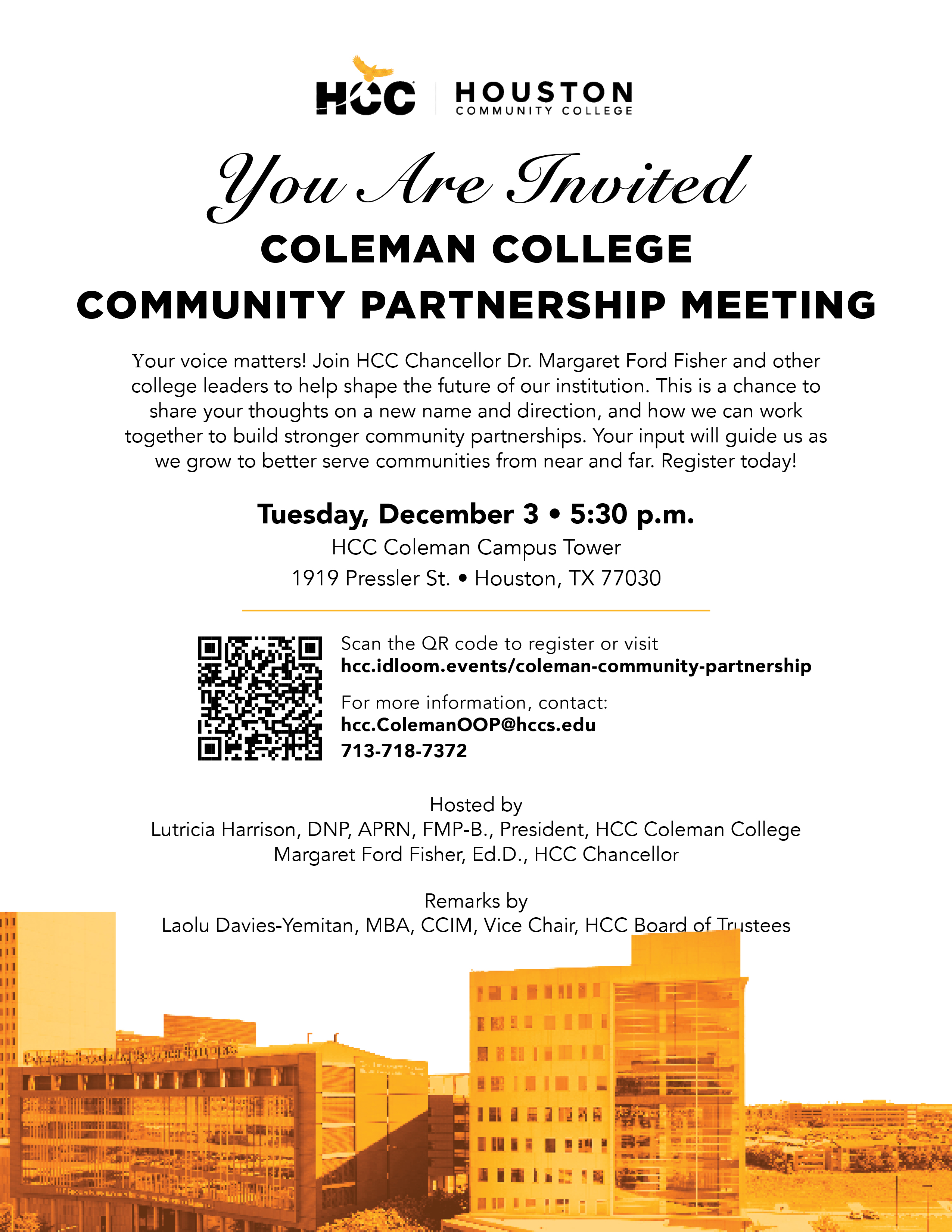 Your voice matters! Join HCC Chancellor Dr. Margaret Ford Fisher and other