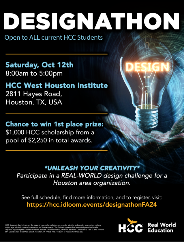 Get ready to design your way to success at the HCC Design-a-thon! Register now and let your imagination run wild. 🌟