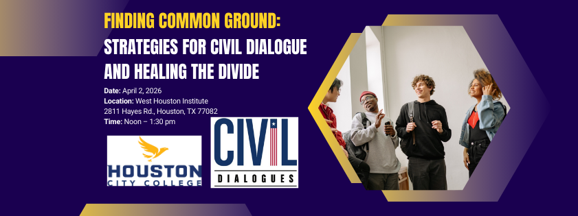 Civil Dialogues, in partnership with Houston City College, will host a town hall meeting to highlight the solutions and skills needed to tackle tough conversations, bridge divides, and find a path forward in our classrooms and in the community. The hope is for participants to leave with actionable skills and the inspiration to lead conversations courageously—whether as students navigating tough dialogues, instructors teaching difficult topics, or citizens engaging within their community. Participants will have an opportunity to practice how to engage in conversation about some of the timely (and difficult) topics they care about.